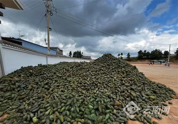 好模式带来好收成。2025年,全乡共收购松果超过154万公斤,产业总产值达395万元。不仅直接带动农户增收310万元以上,参与采摘的群众人均增收超过4700元,还为村集体带来71万余元的收入。山林资源真正变成了增收资产,绿叶子结出了“金果子”。