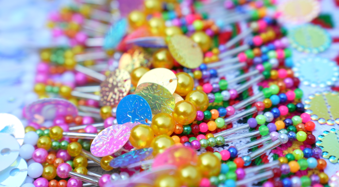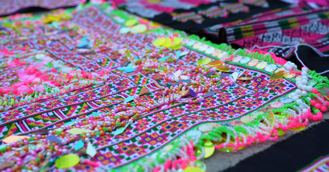 24岁的角瑶绣娘邓登英举起手中的绣品