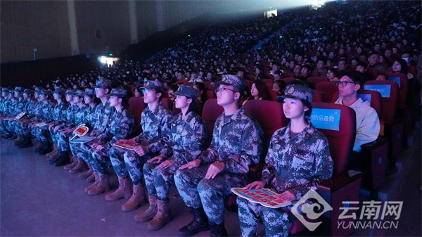 “一支强大的人民军队是国家安宁、民族复兴的坚实根基”“向榜样学习,发现光、追寻光、成为光”“把国家发展和青年奋斗的目标紧紧相连”……互动环节中,学子们真情流露,分享着内心的震撼与感悟。当主持人倡议共同宣誓时,全场师生起立,齐声高喊“请党放心,强国有我”,激昂的誓言穿透会堂,久久回荡,将现场气氛推向高潮,展现出云岭青年将青春融入党和人民事业的坚定信念。