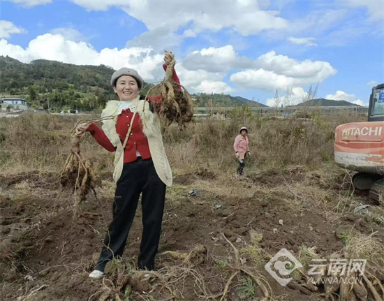寒冬时节,暖意融融,迎来了葛根收获期,走进昌宁县田园镇新城村葛根种植示范基地,10多名村民忙着收挖葛根,一片繁忙景象。2025年3月,通过西南大学挂职干部的“桥梁”作用,重庆富葛实业有限公司与本地合作社签约,种植“富葛一号”葛根30亩,加工厂同步开建。