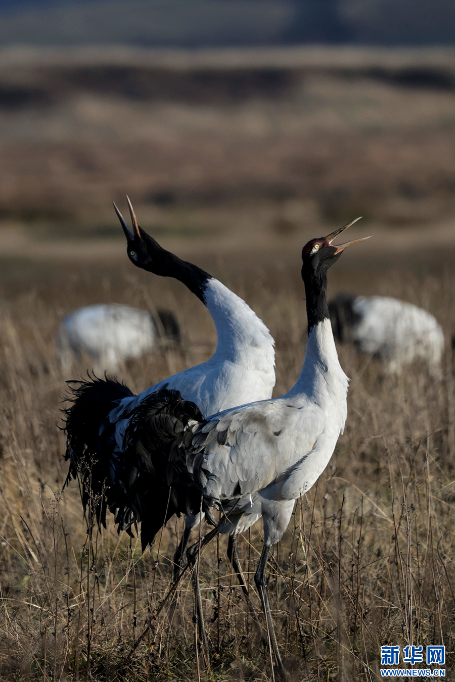 黑颈鹤仰头鸣叫(11月26日摄)。新华网发(徐华陵 摄)