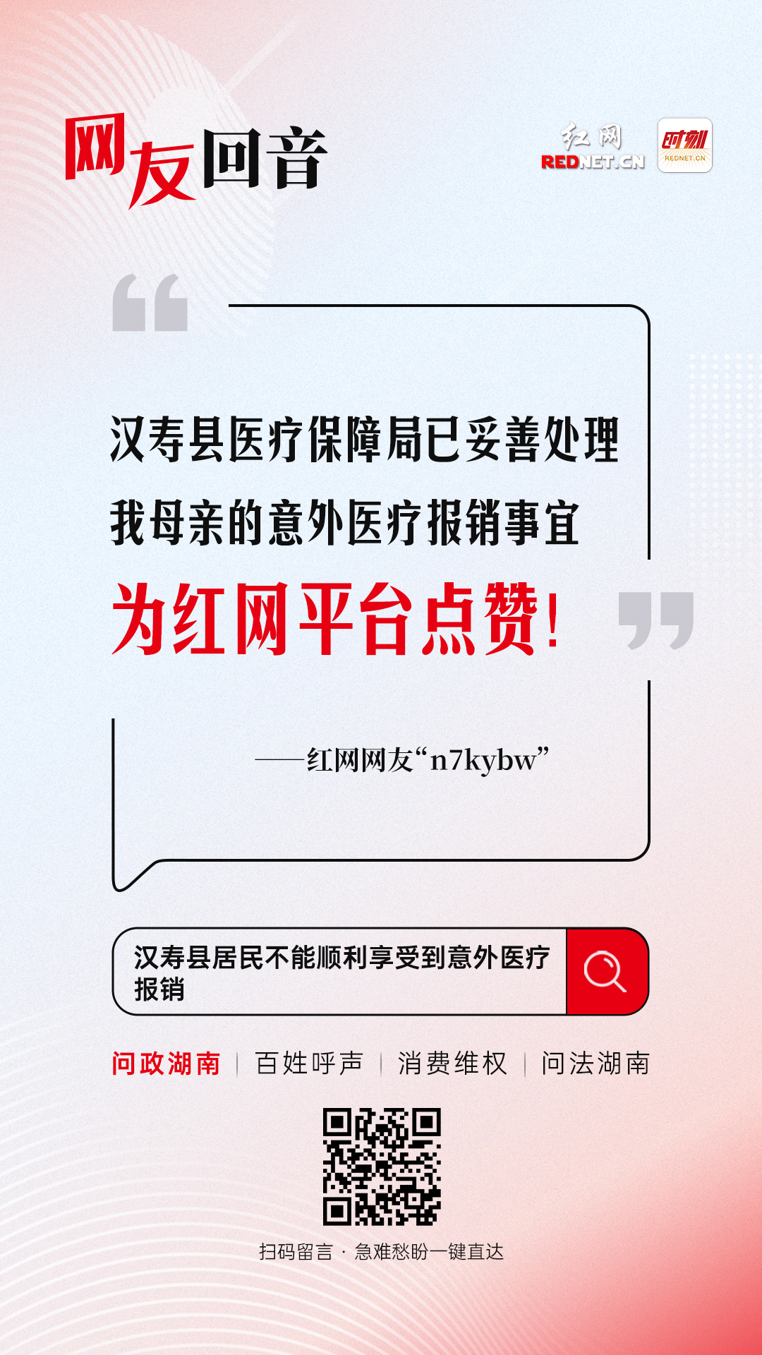 原标题:网友回音丨感谢汉寿县医疗保障局,意外医疗报销事宜已处理!
