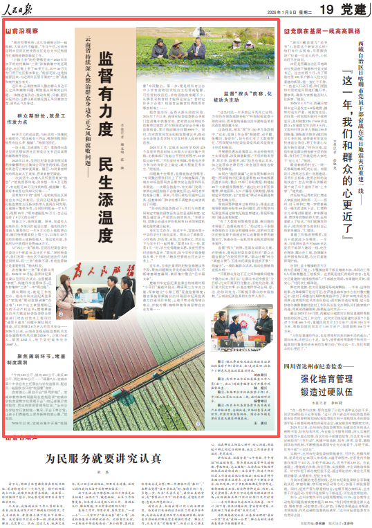 监督“探头”前移,还需发动群众力量。在昭通市,鲁甸县纪委监委组织的“群众点题监督会”在院坝里开展,“群众吐槽”转为“满意点赞”;玉溪市纪委监委创新开展“一线遍访”,一线收集群众诉求,推动监督触角直抵末梢……