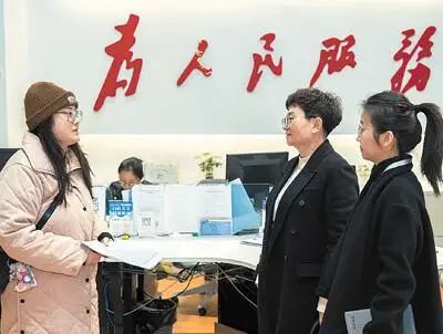 昆明市五华区纪委监委工作人员(右一、右二)到政务服务大厅开展作风监督检查。陆煜 摄