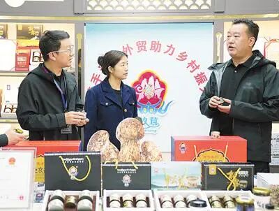 香格里拉市纪检监察干部(左、中)深入松茸加工企业一线,面对面倾听诉求。杨雪婷 摄