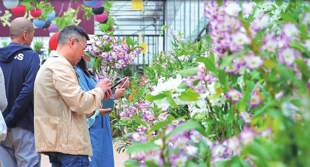 外地游客正在挑选石斛花。通讯员 徐静 摄