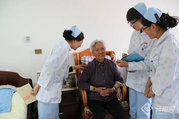 图说:玉溪市老年公寓护理员对老人开展日常照护 云南老年报供图