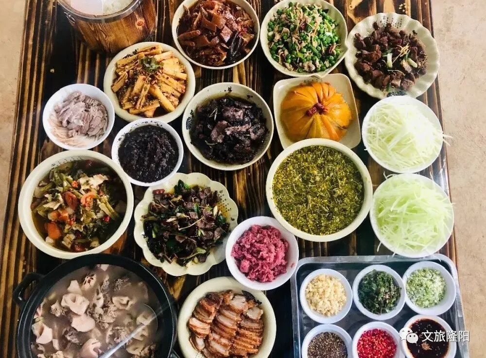 用红肉、酥肉、三线肉、粉蒸肉干香、白扁豆、杂碎、竹笋等食材经煮、炒、蒸、炸、煎、腌等