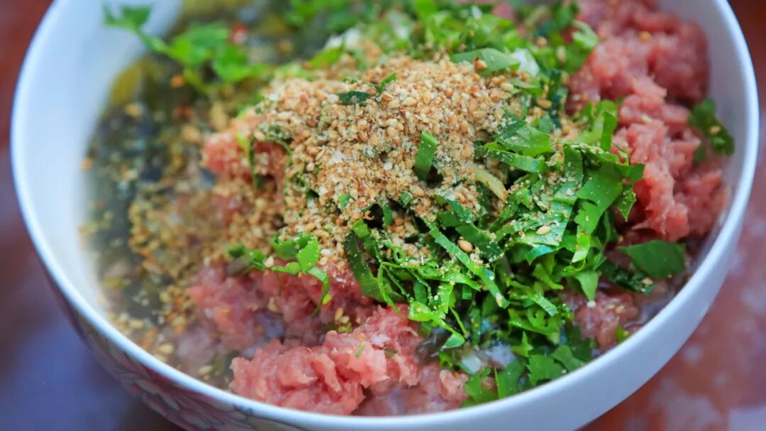 猪里脊肉切片剁细用沸水焯熟后放凉