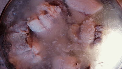 刚宰杀的新鲜猪肉用盐将血水腌出来