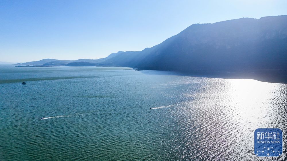 ↑ 1月22日拍摄的滇池景色(无人机照片)。
