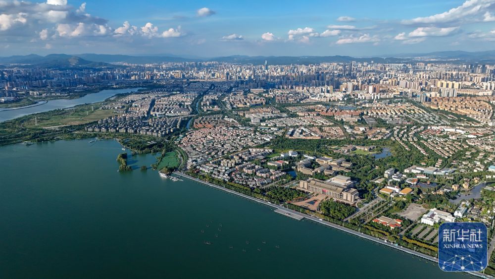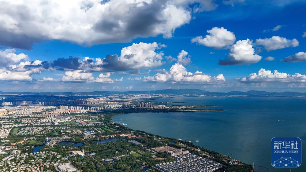 ↑ 2025年9月3日拍摄的滇池风光(无人机照片)。