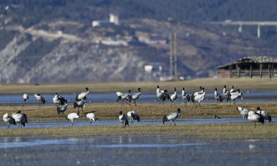 要说这次观鸟季的“顶流明星”,黑颈鹤绝对是当仁不让的焦点。据迪庆州纳帕海省级自然保护区管护局1月20日通报,2025—2026越冬季,纳帕海监测到黑颈鹤573只(其中幼鸟88只),直接创下保护区成立以来的最高纪录。