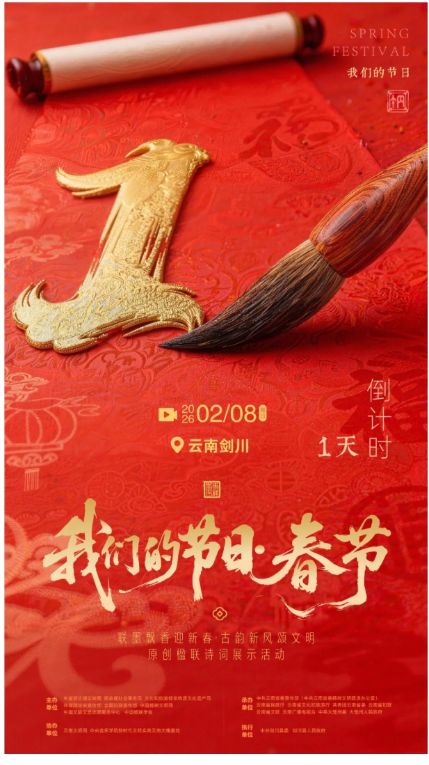 一纸楹联承家风,满城墨香贺新春。2月8日,2026年全国“我们的节日·春节”主题文化活动将在大理白族自治州剑川县拉开帷幕。活动现场,非遗展演、楹联赏析、民俗互动等将轮番上演,邀你共赴这场文化盛宴,在红联福字间,在非遗烟火里,邂逅最有底蕴的中国年。