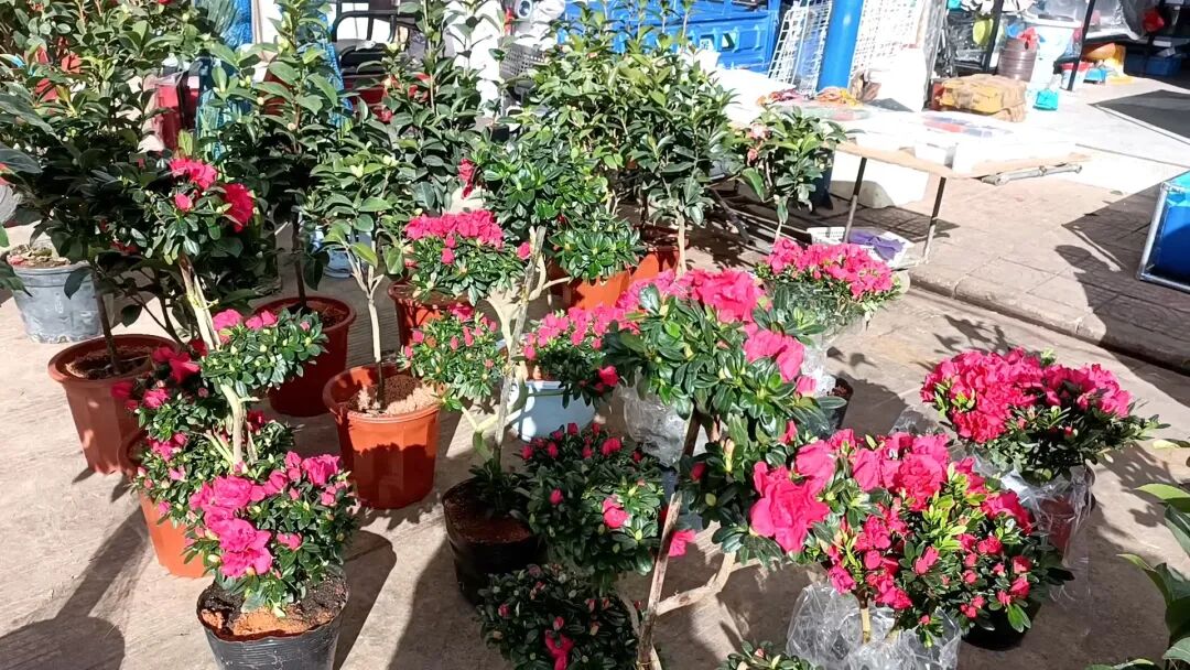 在市场的街角,杜鹃花开得正艳。这抹喜庆的红色衬着集市的人声鼎沸与街口的烟火气息更显热闹,杜鹃花香暖了新春、甜了岁末,永胜的年味儿在花影缤纷里悄然弥漫。(杨艳梅 谷廷娇)