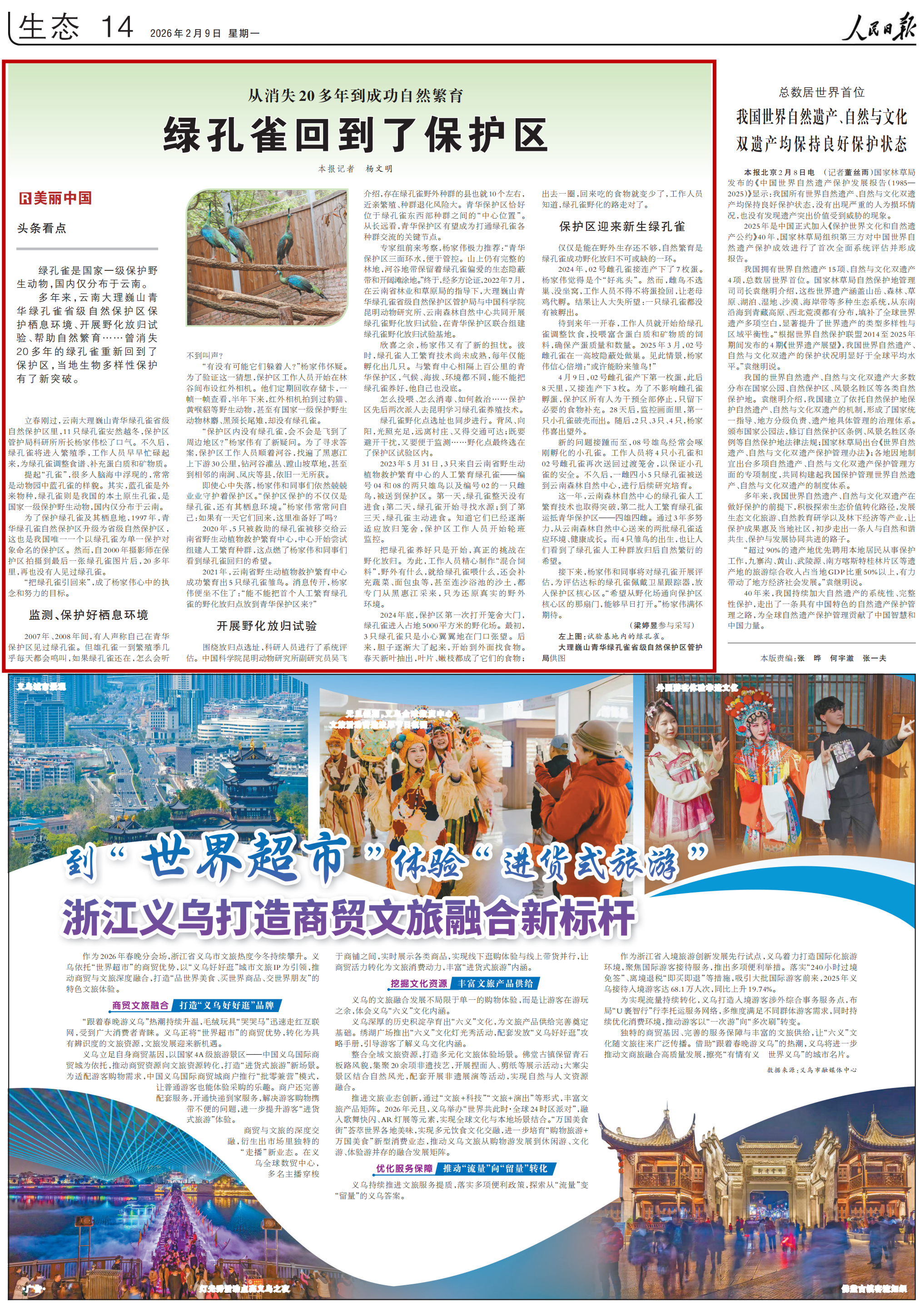 多年来,云南大理巍山青华绿孔雀省级自然保护区保护栖息环境、开展野化放归试验、帮助自然繁育……曾消失20多年的绿孔雀重新回到了保护区,当地生物多样性保护有了新突破。