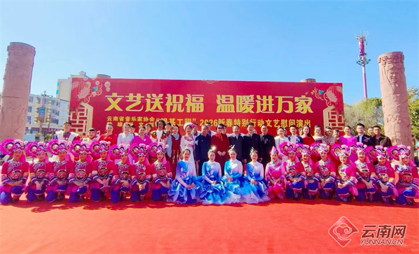 云南网讯(记者 牟燕红)近日,云南省音乐家协会组织省内优秀演员走进楚雄,开展省音协“强基工程”2026新春特别行动文艺志愿演出,把新年的祝福和温暖的问候送到楚雄市民群众的家门口。