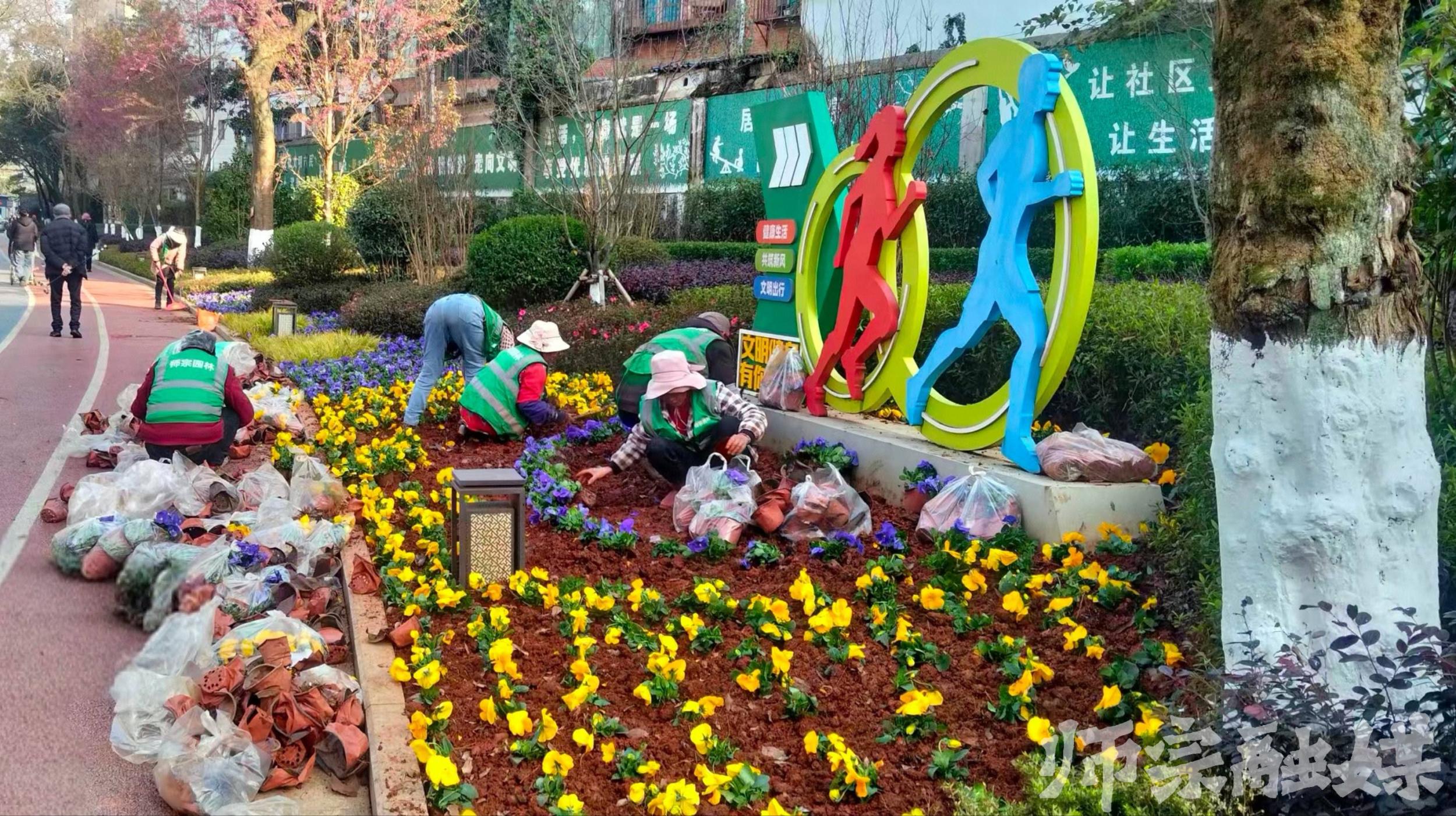 除了出行设施,城市的“绿色容颜”也在悄然更新。县住建部门统筹推进绿化补植与精细化养护,对长势不良的花木、草坪及时更换补植,并加强日常养护。同时,为方便群众出行,还在部分花台内铺设了公分石。