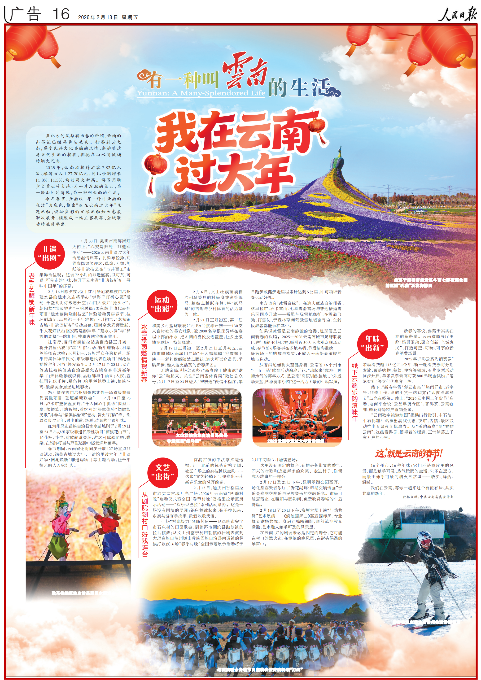 今年春节,云南以“有一种叫云南的生活”为底色,推出“我在云南过大年”主题活动,缤纷多彩的文旅活动如画卷般渐次展开,铺展成一幅主客共享、全域联动的温暖年画。