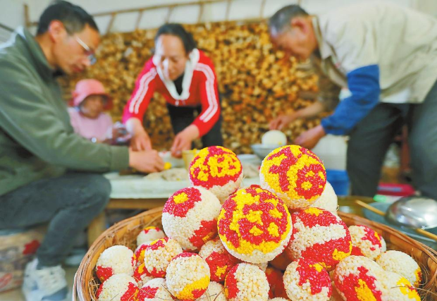 晋宁米花团制作技艺已有百年历史,是深植年俗的非遗美食,承载着浓浓年味与乡愁,被列入昆明市级非物质文化遗产。其制作过程从选米、淘洗到蒸煮、炒制、成型、晾晒等10多道工序,步步见匠心。如今,忙碌中重温团圆温情,米花团已成为家庭情感的幸福载体。