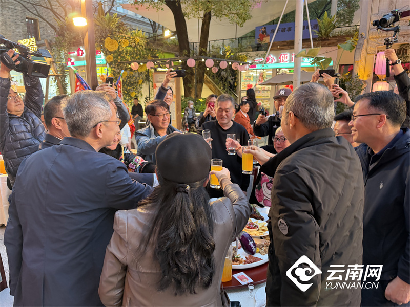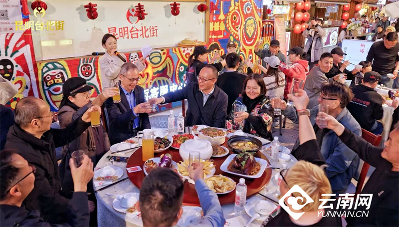 云南网讯(记者 高祎祎 王小羽)2月15日,“两岸同欢·共话团圆”主题年夜饭活动在昆明台北街举行。在喜庆祥和的氛围中,在昆台湾商户、台湾青年代表与本地居民围炉同坐、共叙乡情,以一桌融合两岸风味的年夜饭迎接新春。