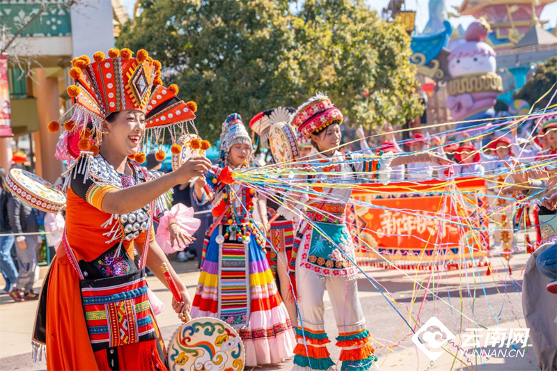 五大巡游轮番上演,演绎“万马奔腾”中国年。春节期间,七彩云南•欢乐世界以“巡游”为轴线,将传统与现代科技、民族风情与长街古韵等文化元素串联,推出五场主题鲜明的大巡游,成为春节活动的高潮亮点。马年春节限定推出的“万马奔腾大巡游”,队伍以“马”为元素,融入民族舞蹈,身着民族服饰的演员们踏着欢快的步伐带领游客载歌载舞。巡游队伍里有“财神”扮演者随机派发“超多马内”特色“红包”;队伍中穿插了剪纸、红灯笼、萌马等方阵,向游客传递新春的喜庆。
