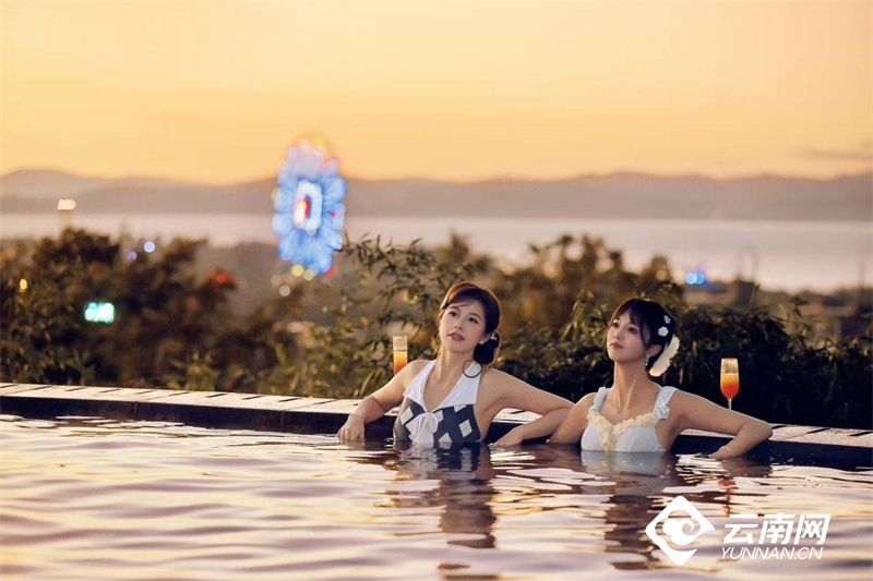 幻彩烟花点亮滇池,山林温泉滋养身心。在辞旧迎新之际,七彩云南古滇度假区还将推出持续15天的烟花表演秀。绚丽的烟花如星河,在滇池上空织就一幅流动的光影画卷,重现“爆竹声中一岁除”的诗意场景。现场欢呼声与烟花声共鸣,游客们纷纷举起手机,记录下这难忘的瞬间。游玩疲惫之际,游客也可前往古滇温泉山庄来一场新年“泡头汤之旅”。72个温泉泡池星罗棋布,源自地下2622米的天然温泉水,雾气氤氲升腾,温热泉水包裹全身,涤荡旧岁尘埃,注入蓬勃生机。