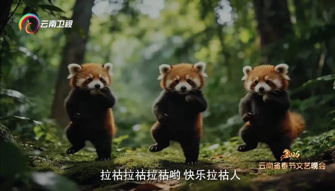 同时,晚会创新采用“多元舞台+世界遗产地+虚实结合”模式,把哈尼梯田、景迈山古茶林、三江并流等自然瑰宝搬上荧屏,以云南壮美的大山大川为主场景、以田园村寨为小舞台,以4K超高清画面为视听质感,以AI、AR、CG技术为点睛之笔。当水木年华组合与外籍艺术家在景迈山古茶林共同演唱《一生有你》,当充满乡音乡情乡愁的歌曲《老家》在大理阿尼么乡村好歌汇飘出,当多媒体节目《青鱼阵》的主演——网络博主@晓丹小仙女儿在“AI+CG”虚实结合的澄江抚仙湖与云南青鱼跃出海面,当AI赋能的亚洲象、绿孔雀、滇金丝猴等云南代表性动植物与快乐拉祜村民们欢聚在传统节日里纵情歌唱,当旅居云南的龚琳娜与小邻居共同唱起怒江民谣,在《歌行四方》的歌声中畅游云南绝美旅游目的地时,云南的青山愈发叠翠、茶林愈发飘香、高原湖泊愈发澄澈透亮……这既是云南春晚对生态文明建设成果的直观呈现,也是绿色发展理念的艺术表达。歌声与山水共鸣、舞蹈与自然同频,生动诠释了“绿水青山就是金山银山”,也展现了云南筑牢生态屏障、建设美丽家园的坚定担当。