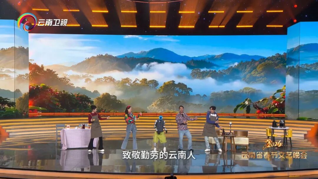 最令人难忘的是小品《喝杯咖啡》。《冬天里的一把火》把我们拉回八十年代。从1986年到2026年,四十年时间,孩童都已长大。咖啡的制作也更现代化。这个小品不仅藏着时代变迁,还透着云南咖啡人的骄傲。用幽默的语言“我喜欢你装佯的样子,我对你的爱一点都不盲目”把骄傲和炫耀巧妙地藏了起来。