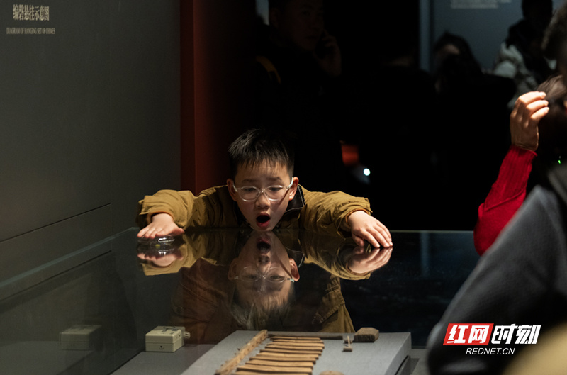 参观的小朋友看到精美的文物感叹不已。