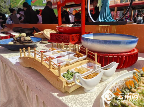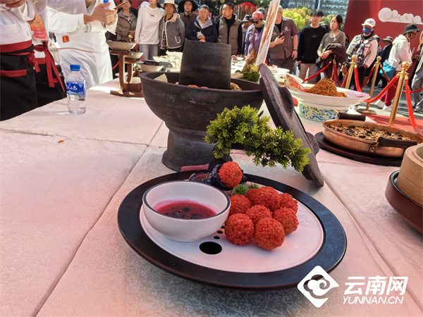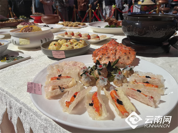 一旁的滇菜文化展区,禄劝撒坝火腿、石林乳饼、寻甸牛干巴等特色食材琳琅满目;非遗技艺表演区,面塑、糖艺、大理跳菜等绝活轮番上演,引得观众阵阵喝彩。
