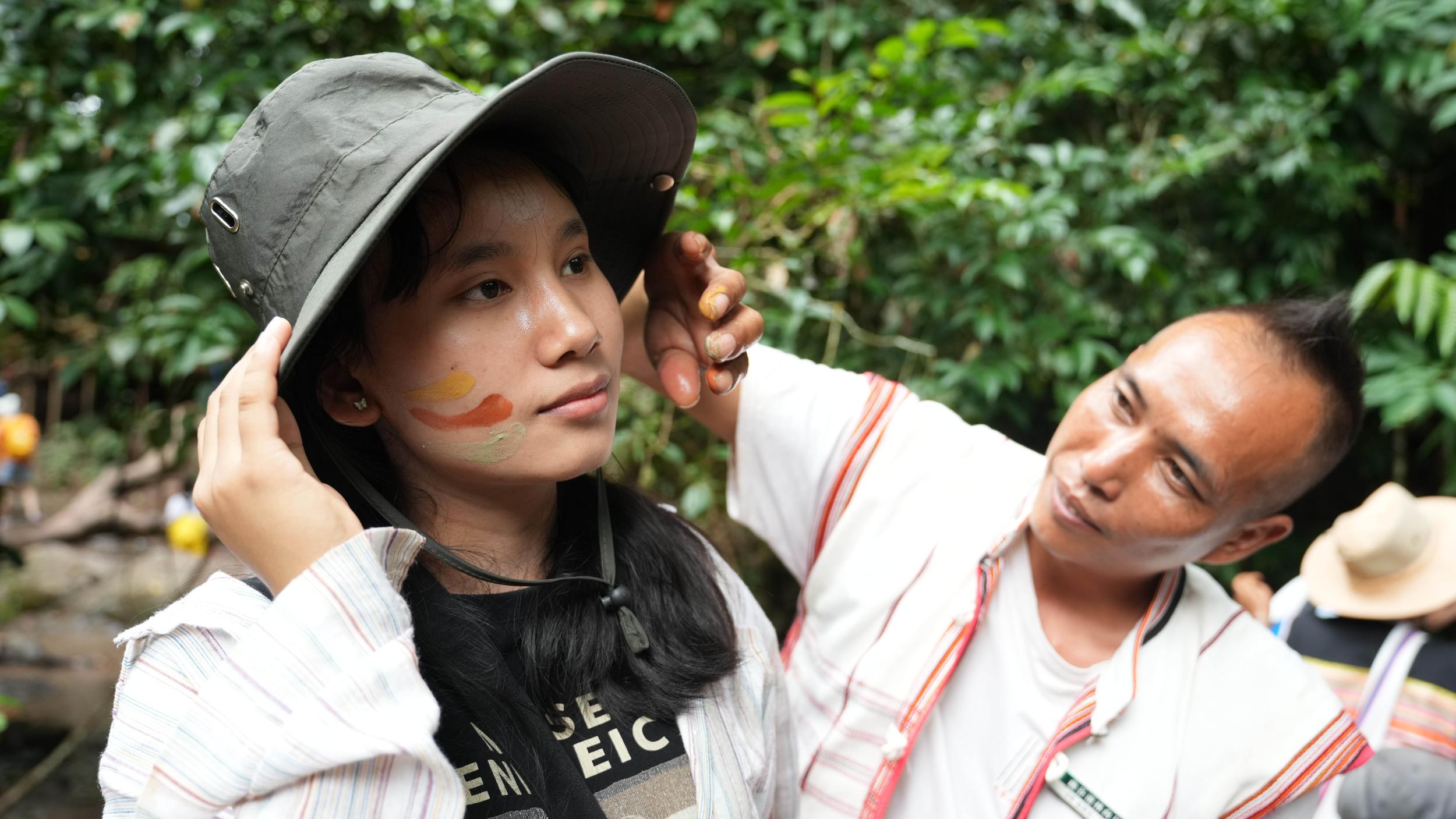 游客体验“雨林彩妆”。鲁鹏 摄