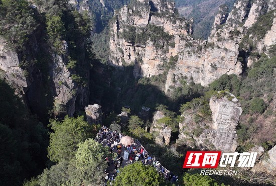 2026年2月22日,春节假期第八天,湖南张家界国家森林公园旅游热度依旧,许多游客和旅行团避开春节客流拥挤的高峰时段,选择在假期尾声错峰出游,在慢旅行中感受张家界奇美自然风光的独特魅力。