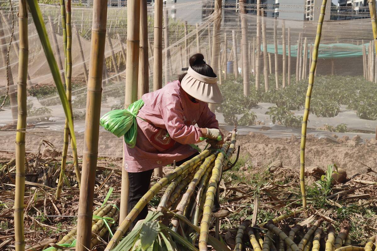 和合作社规模种植不同,恩乐镇河谷一带村民采用少量种植、零星售卖的方式发展甘蔗产业。从初冬开始,李仙江河畔甘蔗陆续成熟,集市上随处可见当地种植的新鲜甘蔗沿街售卖。民江村老街组彭梅家今年种植黄金甘蔗两亩多,亩产8吨左右。“我家都是散卖,3至4块钱一公斤,帮客户削好切好,拿回家直接吃,过年这几天买甘蔗的人特别多,一天能卖两百多公斤。”彭梅边削甘蔗边说。
