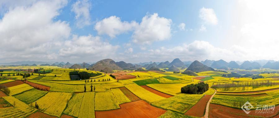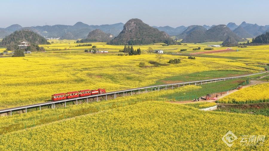 云南网讯(记者 杨语嫣 通讯员 甘鹤 毛虹)这里是吉尼斯认证的世界最大自然天成花园。早春,一幅幅油菜花织就成金色画卷,春风拂过,金浪翻涌,花香漫山遍野。这,就是罗平。行走其间,随手一拍,便是无需滤镜的绝美大片。
