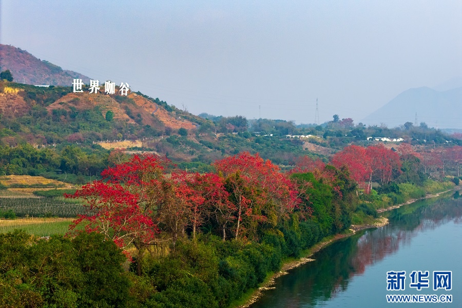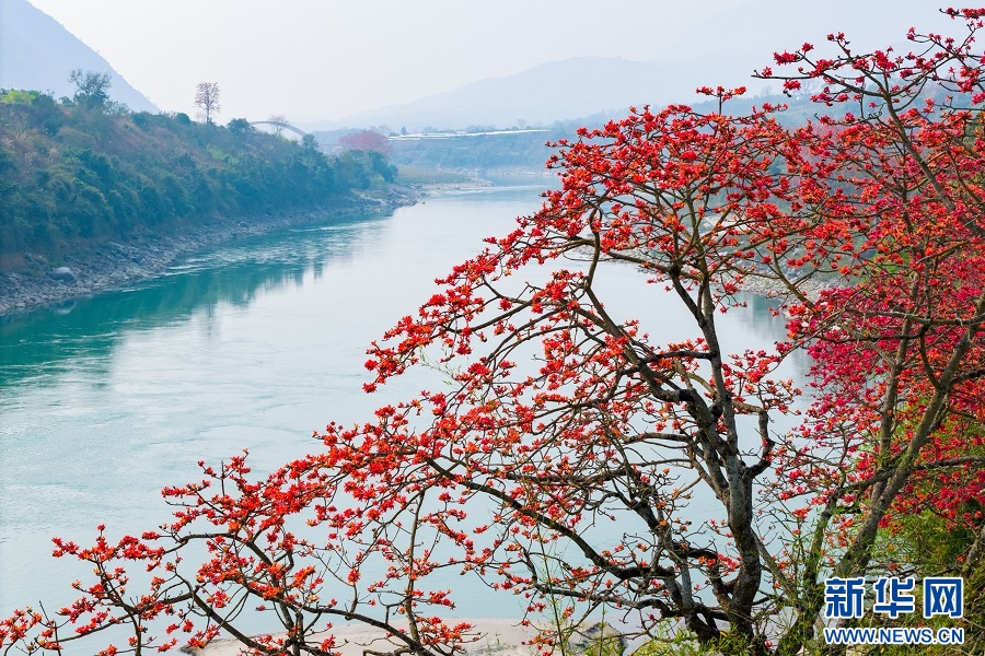 木棉花开映怒江(3月1日 摄)。新华网发(保山市委宣传部 供图)