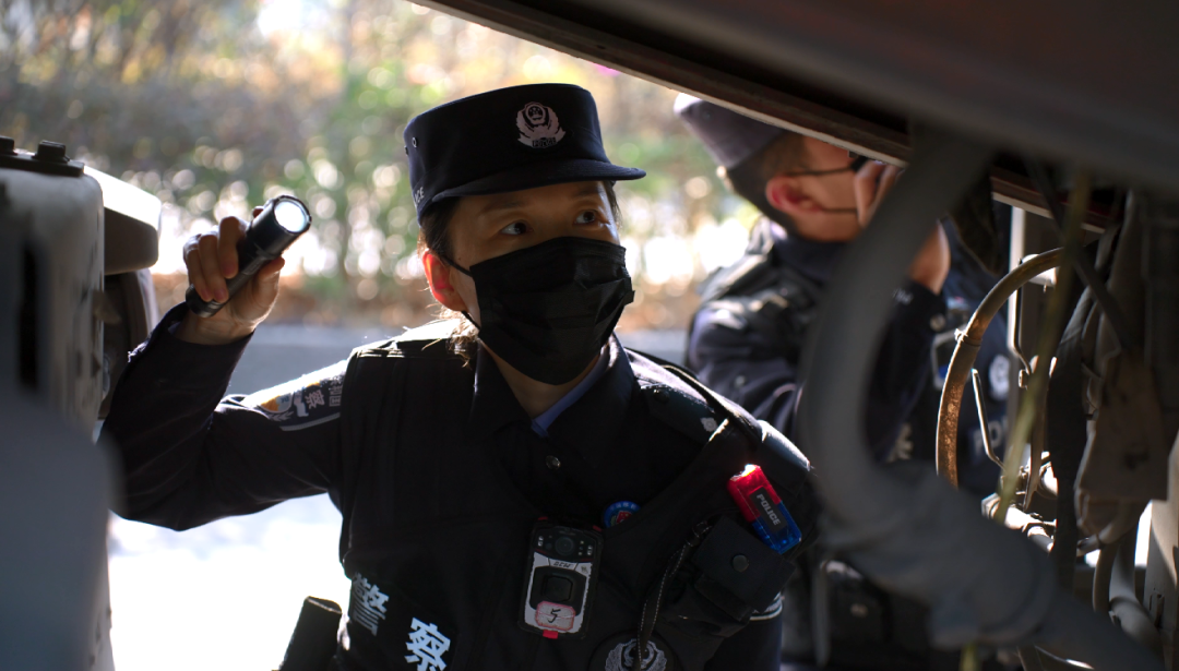 女子侦查组成员对过往车辆进行检查。田洪涛 摄