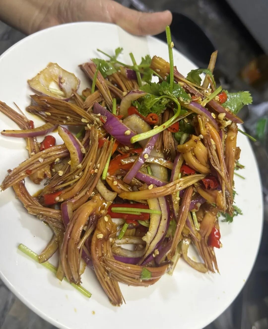 说到最地道的花食,凉拌攀枝花堪称一绝:新鲜攀枝花焯水后撕成细条,加入小米辣、蒜泥、香菜、柠檬等简单调味,酸辣爽口的滋味中藏着淡淡的花香,是下饭佐酒的春日必备。白花的吃法则更为丰富多样,清炒白花鲜香软嫩,入口满是自然气息;白花煮豆米汤鲜味醇,温润回甘;白花炒腊肉咸香交融,油脂的醇厚与花香碰撞出独特风味;白花炖鸡则温润滋补,每一口都是春日的滋养,每一道菜都承载着漫湾人的生活智慧与春日情怀。