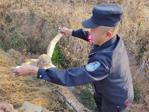 云南网讯(记者 彭雪青 通讯员 何翁仑)“警察同志,我在路边发现一只‘怪鸟’,好像受伤飞不起来了,麻烦你们来看看!”近日,德宏边境管理支队勐戛边境派出所接到辖区群众求助电话。