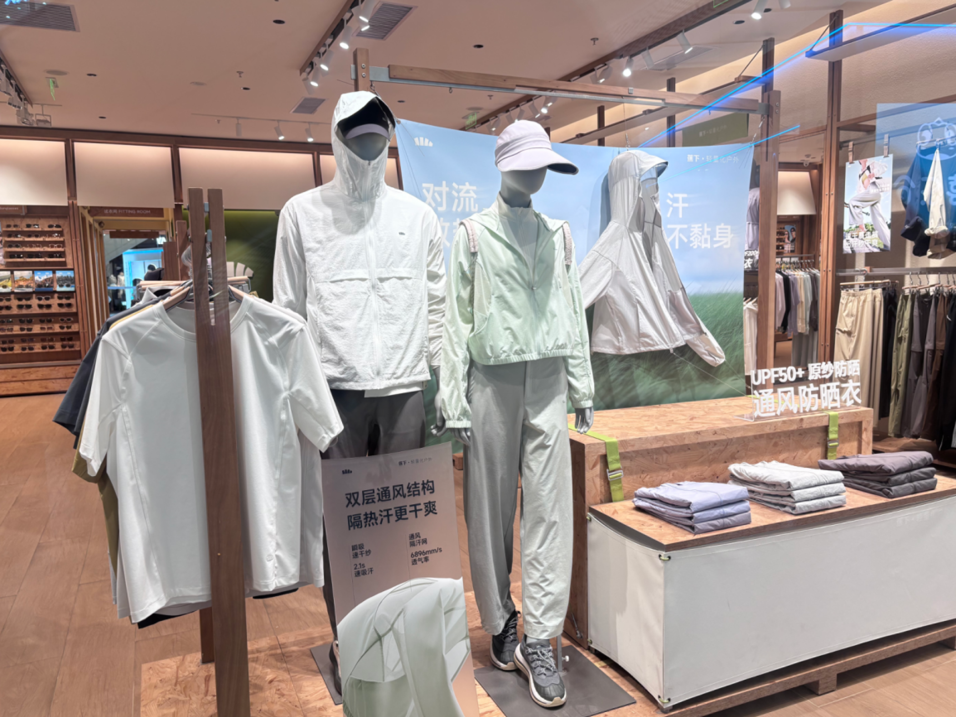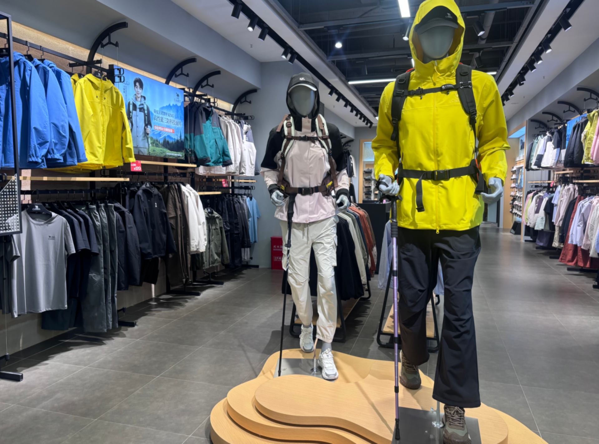这股“踏青热”还蔓延到了大型商超的运动品牌门店。在吾悦广场内一家知名户外运动品牌的店铺里,薄款冲锋衣、登山包、登山杖、登山鞋等春季新品被陈列在入口最显眼的位置,店内“春日优惠”的标识吸引着往来顾客的目光。店员介绍:“轻量化、多功能的春季户外套装销量最好,兼顾防风、透气与颜值的款式成为主流选择,不少顾客都是为了清明假期赏花、徒步、露营专门前来购置新衣。”