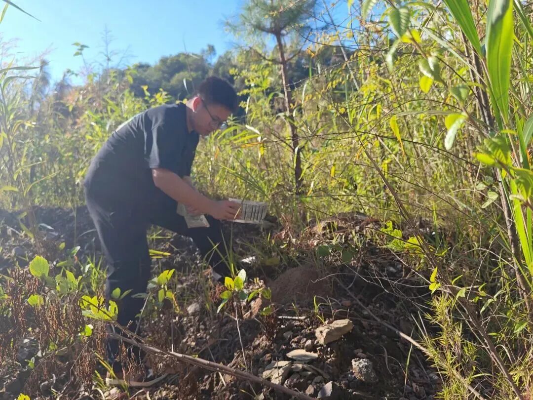 边疆农业的发展,既要丰产,更要安全。程印鹏主动投身防控一线,与同事们并肩作战,构建起全方位的生态安全屏障。针对红火蚁繁殖快、传播广、危害大的特点,制定并精准实施“统一投饵+重点补治”的科学防控策略,成功灭杀蚁巢1000余个,经后期持续监测,防控区域内蚁群密度下降超50%,有效遏制了红火蚁对农作物和村民生活的侵害。面对薇甘菊快速蔓延、争夺作物养分、破坏生态环境的问题,程印鹏向大家进行广泛宣传的同时,还推广“人工清除+药剂点防”的综合治理模式,带领农户分片清理、科学防治,从源头遏制了薇甘菊的扩散态势。“不是在田间,就是在去田间的路上”,这是近两年来程印鹏的工作常态,用专业知识守护边疆农业的生态安全,让每一寸田园都保持洁净与生机。