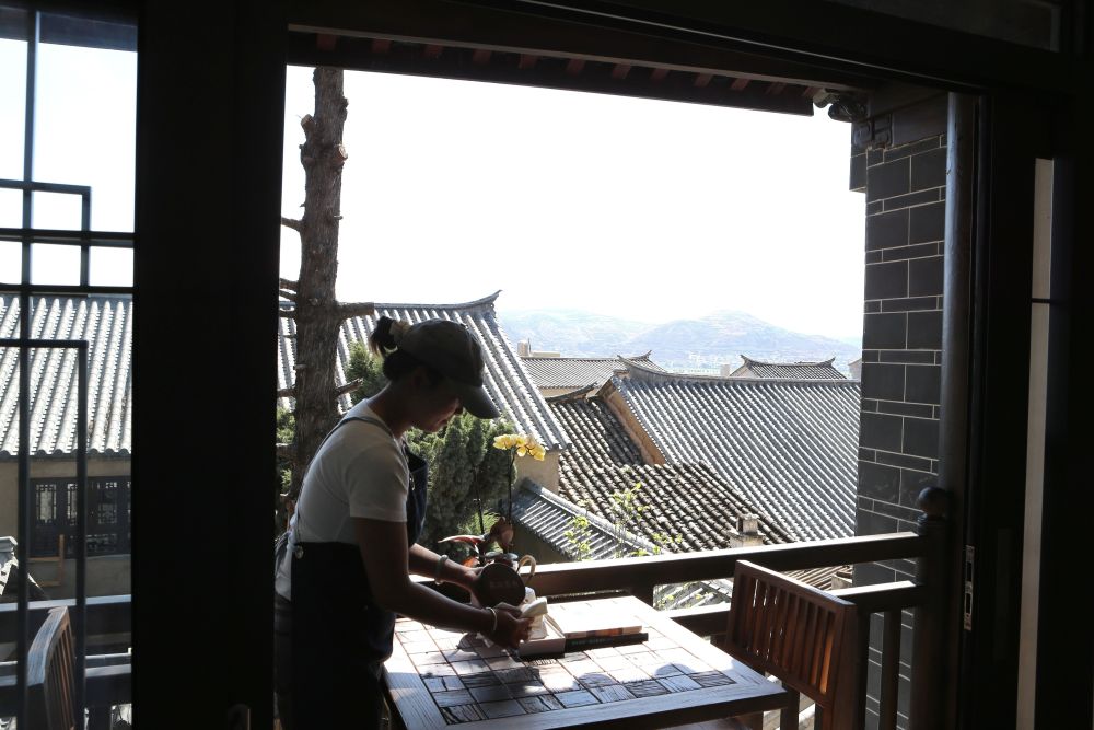 ↑ 3月24日,白雾村一家民宿的工作人员在打扫卫生。