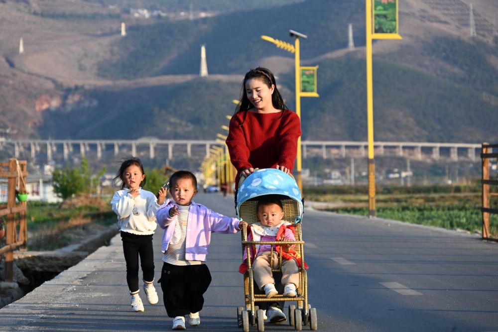 ↑ 3月24日,白雾村村民在村中散步。