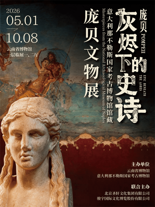 云南网讯(记者 李熙临)日前,记者从云南省博物馆获悉,“灰烬下的史诗——意大利那不勒斯国家考古博物馆馆藏庞贝文物展”将于5月1日至10月8日在云南省博物馆展出。展览精选来自意大利的108件(套)珍贵文物,涵盖大理石雕塑、壁画陶器、青铜器、金银饰等,均为首次来滇展出。