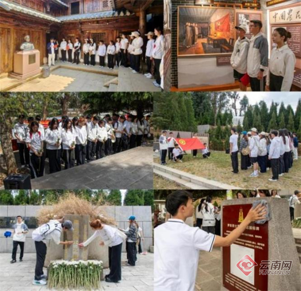 在昆明呈贡罗彩烈士故居及纪念园,云南民族大学师生通过聆听烈士事迹、肃立默哀、敬献鲜花等形式缅怀先烈,园内共青团员重温入团誓词,进一步明晰青春责任,将红色精神转化为学习奋进的动力。