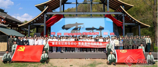 云南工商学院组织师生徒步8公里“重走长征路”,师生们在崎岖路段磨砺意志、凝聚团队合力,感悟幸福生活来之不易,以实际行动传承长征精神与红色基因。