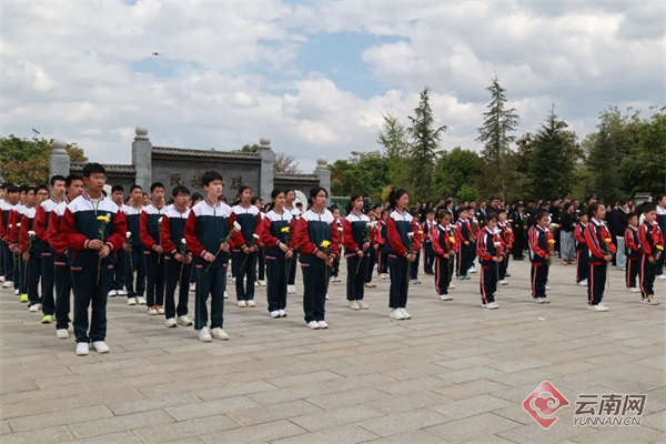楚雄一中组织百余名师生徒步至西山公园爱国主义教育基地,开展“清明祭英烈·薪火永相传”活动,唱国歌、献鲜花、诵《英雄赞歌》、重温入团入队誓词,让红色血脉代代相传。