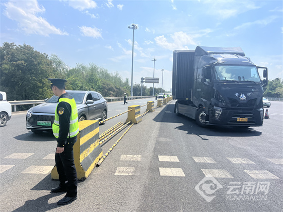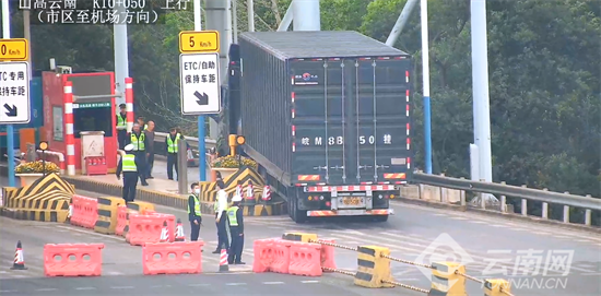 云南网讯(记者 彭锡 通讯员 潘云 杨邓方)4月8日,昆明机场高速李其收费站上演了一场高效有序的应急处置。一辆车身宽度超限的大型运输车因驶入角度不足,无法正常通过收费站口。昆明机场高速公司迅速联合交警、路政部门启动联动机制,短时间内完成处置,有力保障了道路通行秩序。