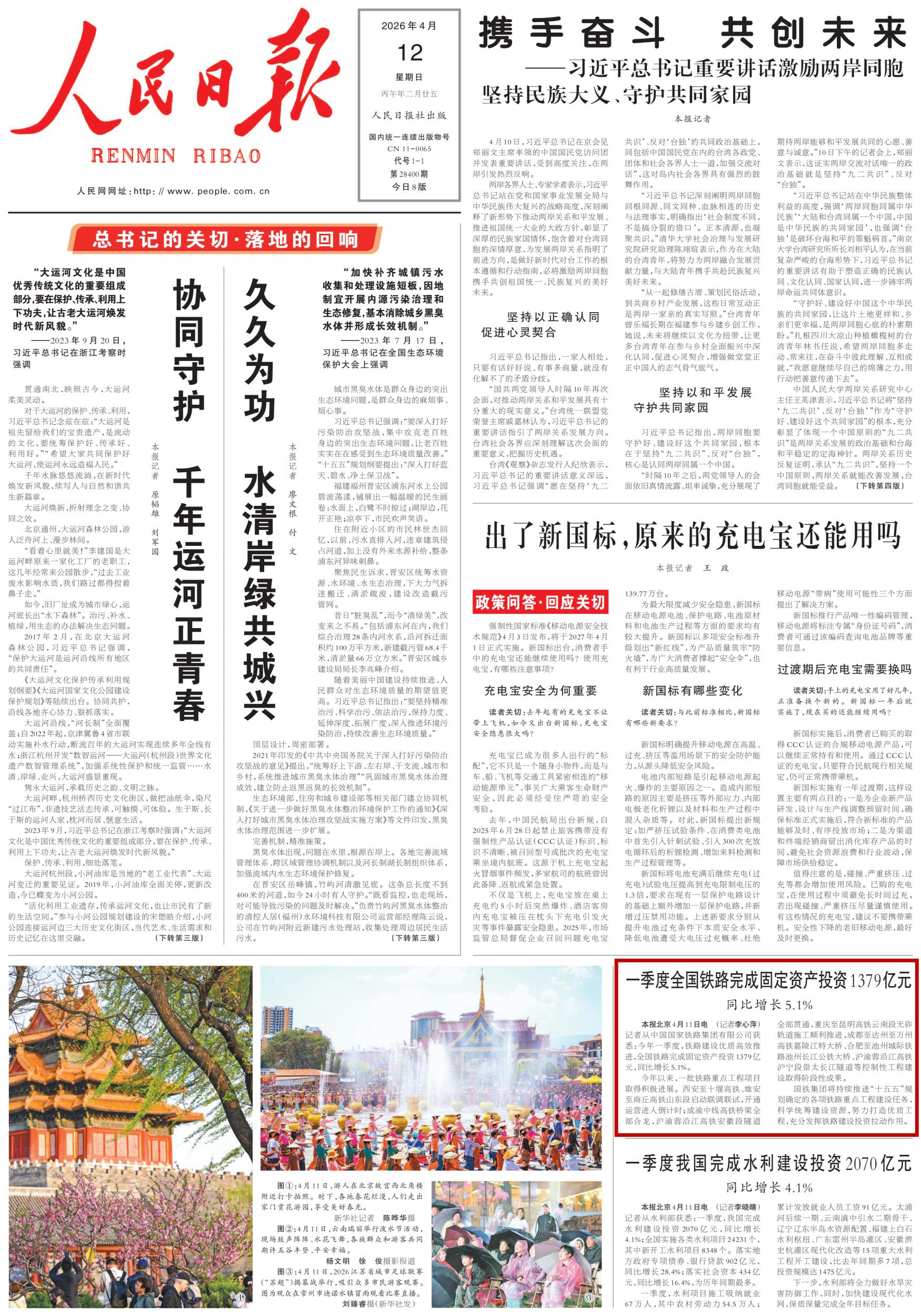 原标题:一季度全国铁路完成固定资产投资1379亿元 同比增长5.1%