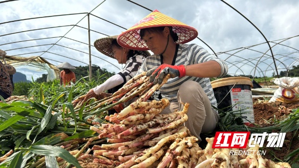 江永县桃川镇建安亭村的香姜种植基地里,姜农正忙着挖姜、去泥、剪枝。谢文彬 陈平成/摄